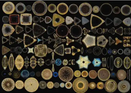 There are over 100,000 species of diatoms which account for 50% of the ocean's primary production