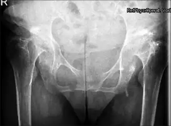 - ↑ Van De Velde S, Fillman R, Yandow S (2006). "The aetiology of protrusio acetabuli. Literature review from 1824 to 2006". Acta Orthop Belg. 72 (5): 524–9. PMID 17152413.