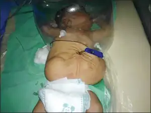 - A partial or complete lack of abdominal wall muscles. There may be wrinkly folds of skin covering the abdomen.