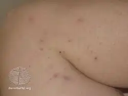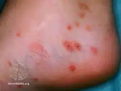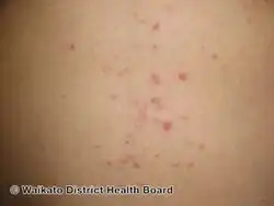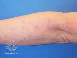 | Symptoms | Itchy, small bumps on the arms, legs, and trunk[3][4] |