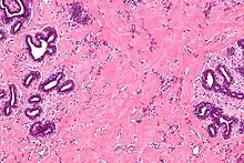 - ↑ Powell CM, Cranor ML, Rosen PP (March 1995). "Pseudoangiomatous stromal hyperplasia (PASH). A mammary stromal tumor with myofibroblastic differentiation". Am. J. Surg. Pathol. 19 (3): 270–7. doi:10.1097/00000478-199503000-00004. PMID 7872425. S2CID 19170467.