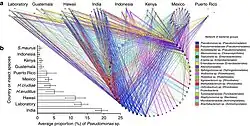 {{cite journal}}: CS1 maint: multiple names: authors list (link) - ↑ Javier A. Ceja-Navarro; Fernando E. Vega; Ulas Karaoz; Zhao Hao; Stefan Jenkins; Hsiao Chien Lim; Petr Kosina; Francisco Infante; Trent R. Northen; Eoin L. Brodie (14 July 2015). "Gut microbiota mediate caffeine detoxification in the primary insect pest of coffee". Nature Communications. 6 7618. Bibcode:2015NatCo...6.7618C. doi:10.1038/ncomms8618. PMC 4510693. PMID 26173063.
