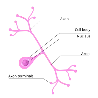A pseudounipolar neuron is a type of neuron which has one extension from its cell body. This type of neuron contains an axon that has split into two branches. They develop embryologically as bipolar in shape, and are thus termed pseudounipolar instead of unipolar.[1]