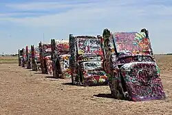 Blues rock singer Janis Joplin had a psychedelic car, a Porsche 356.[35] The trend also extended to motor vehicles. The earliest, and perhaps most famous of all psychedelic vehicles was the famous "Further" bus, driven by Ken Kesey and The Merry Pranksters, which was painted inside and out in 1964 with bold psychedelic designs (although these were executed in primary colours, since the DayGlo colours that soon became de rigueur were then not widely available).[36] Another famous example is John Lennon's psychedelic Rolls-Royce – originally black, he had it repainted in 1967 in a vivid psychedelic gypsy caravan style, prompting bandmate George Harrison to have his Mini Cooper similarly repainted with logos and devices that reflected his burgeoning interest in Indian spirituality.[37]