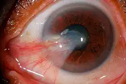 - ↑ Cho CH, Lee SB (October 2015). "Biodegradable collagen matrix (Ologen™) implant and conjunctival autograft for scleral necrosis after pterygium excision: two case reports". BMC Ophthalmology. 15: 140. doi:10.1186/s12886-015-0130-z. PMC 4619331. PMID 26499993.