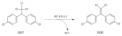 Chemical toxins in the environment are one of many factors influencing adolescent development. In the early 1970s, more than 4000 people were accidentally exposed to polybrominated biphenyls (PBBs).[5] A study was conducted in the child-bearing women exposed to the toxin, with their baby girls reaching menarche by the age of 11.6 years, compared to girls who had low exposure reaching menarche by the age of 12.2–12.6 years.[5] In everyday life, people are exposed to a various number of pesticides, with a large amount found to be disruptive to the endocrine system. Although dichlorodiphenyltrichloroethane (DDT) and the metabolite dichlorodiphenyl dichloroethane (DDE) were banned in the United States in the 1970s, countries around the world are still using these pesticides.[5]