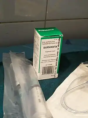 - ↑ Niemarkt H, Kramer BW (2017). "Surfactant for Respiratory Distress Syndrome: New Ideas on a Familiar Drug with Innovative Applications". Neonatology. 111 (4): 408–414. doi:10.1159/000458466. PMC 5516408. PMID 28538236.