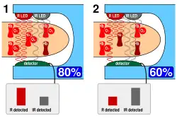 - 1 2 3 Nitzan, Meir; Romem, Ayal; Koppel, Robert (8 July 2014). "Pulse oximetry: fundamentals and technology update". Medical Devices: Evidence and Research. 7: 231–239. doi:10.2147/MDER.S47319. PMC 4099100. PMID 25031547.