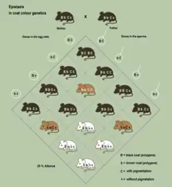 {{cite book}}:|work=ignored (help) - ↑ Punnett, Reginald Crundall (1907). Mendelism (2 ed.). London, UK: Macmillan. (NB. The 1905 first edition of this book does not contain the Punnett square. In 1911, the third edition gives a more thorough explanation.)