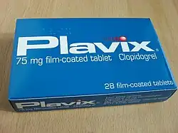- ↑ Doll J, Zeitler E, Becker R (July 2013). "Generic clopidogrel: time to substitute?". JAMA. 310 (2): 145–6. doi:10.1001/jama.2013.7155. PMID 23839745.