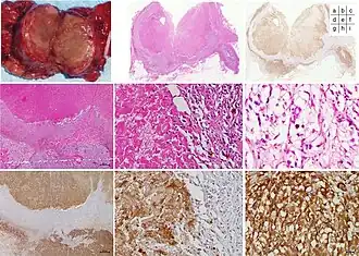 - ↑ Ohara N, Uemura Y, Mezaki N, Kimura K, Kaneko M, Kuwano H, et al. (October 2016). "Histopathological analysis of spontaneous large necrosis of adrenal pheochromocytoma manifested as acute attacks of alternating hypertension and hypotension: a case report". Journal of Medical Case Reports. 10 (1) 279. doi:10.1186/s13256-016-1068-3. PMC 5059976. PMID 27729064.