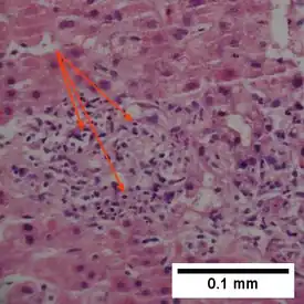 - 1 2 3 4 Hou L, Liu K, Li Y, Ma S, Ji X, Liu L (August 2016). "Necrotic pyknosis is a morphologically and biochemically distinct event from apoptotic pyknosis". Journal of Cell Science. 129 (16) jcs.184374: 3084–3090. doi:10.1242/jcs.184374. PMID 27358477.