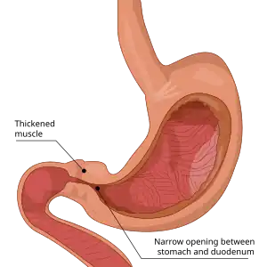- ↑ Hellan M, Lee T, Lerner T (February 2006). "Diagnosis and therapy of primary hypertrophic pyloric stenosis in adults: case report and review of literature". Journal of Gastrointestinal Surgery. 10 (2): 265–9. doi:10.1016/j.gassur.2005.06.003. PMID 16455460. S2CID 25249604.