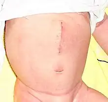Today, the laparoscopic technique has largely supplanted the traditional open repairs which involved either a tiny circular incision around the navel or the Ramstedt procedure. Compared to the older open techniques, the complication rate is equivalent, except for a markedly lower risk of wound infection.[18] This is now considered the standard of care at the majority of children's hospitals across the US, although some surgeons still perform the open technique. Following repair, the small 3mm incisions are hard to see.