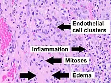 - ↑ Rockafellow, Andrew; Florin, Whitney; Philipone, Elizabeth; Koslovsky, David (2015). "Pregnancy Tumor in a 31-Year-Old Female with a Facial Port-Wine Stain". Case Reports in Dentistry. 2015: 472605. doi:10.1155/2015/472605. PMC 4698533. PMID 26798522.
