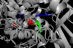| Active site of a thermoactive nitrilase from Pyrococcus abyssi detailing the Cys-Glu-Lys catalytic triad. | |
