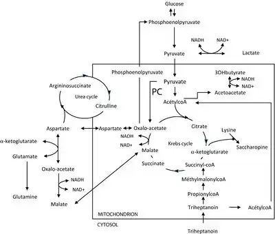 - ↑ Marin-Valencia, Isaac; Roe, Charles R.; Pascual, Juan M. (September 2010). "Pyruvate carboxylase deficiency: Mechanisms, mimics and anaplerosis". Molecular Genetics and Metabolism. 101 (1): 9–17. doi:10.1016/j.ymgme.2010.05.004. Retrieved 27 September 2023.
