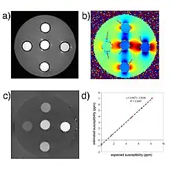- ↑ De Rochefort, Ludovic; Liu, Tian; Kressler, Bryan; Liu, Jing; et al. (2009). "Quantitative susceptibility map reconstruction from MR phase data using bayesian regularization: Validation and application to brain imaging". Magnetic Resonance in Medicine. 63 (1): 194–206. doi:10.1002/mrm.22187. PMID 19953507.