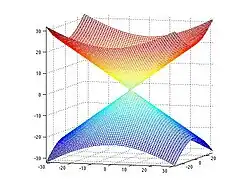 COSMOS solves the inverse problem by oversampling from multiple orientations.[11][12] COSMOS utilizes the fact that the zero cone surface in the Fourier domain is fixed at the magic angle with respect to the B0 field. Therefore, if an object is rotated with respect to the B0 field, then in the object's frame, the B0 field is rotated and thus the cone. Consequently, data that cannot be calculated due to the cone becomes available at the new orientations.