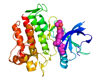 ![]() Selpercatinib inhibitor (magenta spheres) complexed with RET kinase (rainbow colored) | |