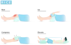 RICE is a mnemonic acronym for four elements of a treatment regimen commonly used for soft tissue injuries: rest, ice, compression, and elevation.[1] While it was hoped it would reduce pain and swelling, evidence is insufficient for benefits.[1] Early movement is more often recommended as of 2020, with the acknowledgment that occasionally short term immobilization is needed for pain.[1]