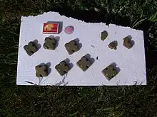 There is an oral vaccination in pellet form which can be left out for wild animals to produce a herd immunity effect.[28] Oral rabies vaccination (ORV) programs have been used in many countries in an effort to control the spread of rabies and limit the risk of human contact with the rabies virus.[27] ORV programs were initiated in Europe in the 1980s, Canada in 1985, and in the United States in 1990.[29] ORV is a preventive measure to eradicate rabies in wild animal vectors of disease, mainly foxes, raccoons, raccoon dogs, coyotes and jackals, but also can be used for dogs in developing countries.[30] ORV programs typically use edible baits to deliver the vaccine to targeted animals. ORV baits consist of a small packet containing the oral vaccine which is then either coated in a fishmeal paste or encased in a fishmeal-polymer block.[27] When an animal bites into the bait, the packets burst and the vaccine is administered.[29] Current research suggests that if adequate amounts of the vaccine is ingested, immunity to the virus should last for upwards of one year.[31] By immunizing wild or stray animals, ORV programs work to create a buffer zone between the rabies virus and potential contact with humans, pets, or livestock.[29] The effectiveness of ORV campaigns in specific areas is determined through trap-and-release methods.[32] Titer tests are performed on the blood drawn from the sample animals in order to measure rabies antibody levels in the blood.[32] Baits are usually distributed by aircraft to more efficiently cover large, rural regions. In order to place baits more precisely and to minimize human and pet contact with baits, however, they are distributed by hand in suburban or urban regions.[29] The potential for human contact with baits is a present concern for OPV programs, but the oral vaccine does not contain the whole rabies virus and has been proven safe in over 60 animal species including cats and dogs.[31] The idea of wildlife vaccination was conceived during the 1960s, and modified-live rabies viruses were used for the experimental oral vaccination of carnivores by the 1970s. The development of safe and effective rabies virus vaccines applied in attractive baits resulted in the first field trials in Switzerland in 1978 to immunize red foxes.[33] ORV programs have seen success in preventing the westward spread of raccoon variant rabies in the United States and even eradicating rabies in red foxes in Switzerland.[34][35]