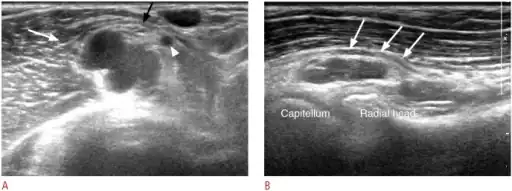 - ↑ 3.0 3.1 3.2 Sarris, Ioannis K.; Papadimitriou, Nikolaos G.; Sotereanos, Dean G. (2002). "Radial Tunnel Syndrome". Techniques in Hand and Upper Extremity Surgery. 6 (4): 209–212. doi:10.1097/00130911-200212000-00010. PMID 16520604.