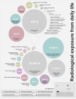 {{cite journal}}: Cite journal requires|journal=(help) - ↑ ICRP, International Commission on Radiological Protection. "Dose limits". ICRPedia. ICRP. Archived from the original on 1 October 2018. Retrieved 2 November 2017.