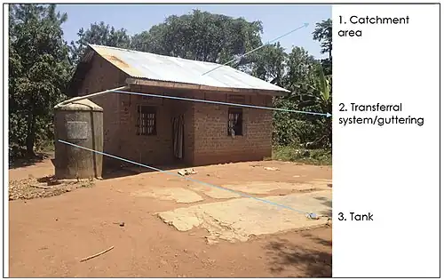 Rooftop rainwater harvesting is used to provide drinking water, domestic water, water for livestock, water for small irrigation, and a way to replenish groundwater levels.[10][11]