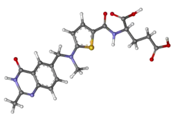 Raltitrexed (Thaltitrexed, Tomudex, TDX, ZD 1694) is an antimetabolite drug used in cancer chemotherapy. It is an inhibitor of thymidylate synthase, and is manufactured by AstraZeneca.[1]