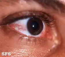• Ocular involvement (mild bilateral conjunctivitis) occurs in about 50% of men with urogenital reactive arthritis syndrome and about 75% of men with enteric reactive arthritis syndrome. Conjunctivitis and uveitis can include redness of the eyes, eye pain and irritation, or blurred vision. Eye involvement typically occurs early in the course of reactive arthritis, and symptoms may come and go.