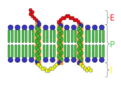 Transmembrane receptor: E=extracellular space; I=intracellular space; P=plasma membrane
