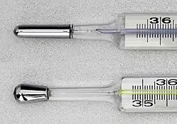 Rectal thermometry is taking a person's temperature by inserting a thermometer into the rectum via the anus.[1] This is generally regarded as the most accurate means of temperature-taking, but some may consider it to be an invasive or humiliating procedure. Thus, it is often used sparingly and primarily on infants, children, or adults for whom taking an oral temperature would risk injury (e.g., an unconscious patient, a post-oral surgery patient, or a person suffering a seizure) or be inaccurate (due to recently ingested liquids or breathing through the mouth).