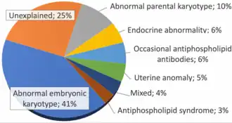 - ↑ Sugiura-Ogasawara M, Ozaki Y, Katano K, Suzumori N, Kitaori T, Mizutani E (August 2012). "Abnormal embryonic karyotype is the most frequent cause of recurrent miscarriage". Human Reproduction. 27 (8): 2297–2303. doi:10.1093/humrep/des179. PMID 22661547.