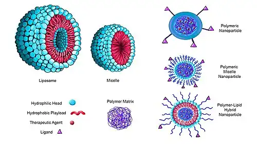 - 1 2 Shah, Saurabh; Famta, Paras; Raghuvanshi, Rajeev Singh; Singh, Shashi Bala; Srivastava, Saurabh (January 2022). "Lipid polymer hybrid nanocarriers: Insights into synthesis aspects, characterization, release mechanisms, surface functionalization and potential implications". Colloid and Interface Science Communications. 46 100570. doi:10.1016/j.colcom.2021.100570. ISSN 2215-0382. S2CID 245472939.
