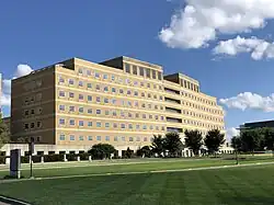 In 1874, the College of Physicians and Surgeons opened in Indianapolis as a breakaway school from the Indiana Medical College following a dispute over admissions policies; the schools reunited as the Medical College of Indiana (MCI) and associated with Butler University in 1878.[20][25] The MCI's building was located at the northeast corner of South Pennsylvania and East Maryland streets; it was destroyed by a fire in 1894.[26] Following a bequest by physician William Lomax (a graduate of LPSM), a new medical education building named in Lomax's honor was constructed in 1895 at 212 North Senate Ave.[19] It was razed in 1960 for the construction of the Indiana Government Center North, surviving both extensive water damage in 1916 and fire damage in 1919.