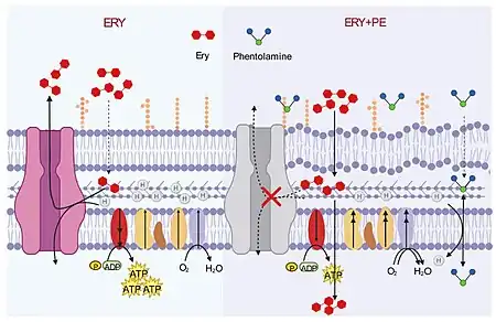 - ↑ Cui, Ze-Hua; He, Hui-Ling; Zheng, Zi-Jian; Yuan, Zhao-Qi; Chen, Ying; Huang, Xin-Yi; Ren, Hao; Zhou, Yu-Feng; Zhao, Dong-Hao; Fang, Liang-Xing; Yu, Yang; Liu, Ya-Hong; Liao, Xiao-Ping; Sun, Jian (14 April 2023). "Phentolamine Significantly Enhances Macrolide Antibiotic Antibacterial Activity against MDR Gram-Negative Bacteria". Antibiotics. 12 (4): 760. doi:10.3390/antibiotics12040760. ISSN 2079-6382.