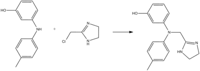 Phentolamine can be synthesized by alkylation of 3-(4-methylanilino)phenol using 2-chloromethylimidazoline:[19][20]
