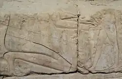 Ancient Egyptian carved scene of circumcision, from the inner northern wall of the Temple of Khonspekhrod at the Precinct of Mut, Luxor, Egypt. Eighteenth dynasty, Amenhotep III, c. 1360 BCE.
