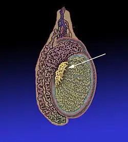![]() Position of the rete testis within the testicle | |