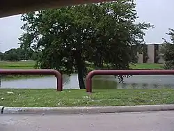 A retention basin, sometimes called a retention pond, wet detention basin, or storm water management pond (SWMP), is an artificial pond with vegetation around the perimeter and a permanent pool of water in its design.[1][2][3] It is used to manage stormwater runoff, for protection against flooding, for erosion control, and to serve as an artificial wetland and improve the water quality in adjacent bodies of water.