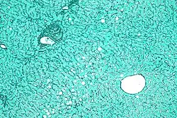 Reticular fibers, reticular fibres or reticulin is a type of fiber in connective tissue[1] composed of type III collagen secreted by reticular cells.[2] They are mainly composed of reticulin protein and form a network or mesh. Reticular fibers crosslink to form a fine meshwork (reticulin). This network acts as a supporting mesh in soft tissues such as liver, bone marrow, and the tissues and organs of the lymphatic system.[3]