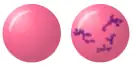 Supravital stain of a smear of human blood from a patient with hemolytic anemia. The reticulocytes are the cells with the dark blue dots and curved linear structures (reticulum) in the cytoplasm.