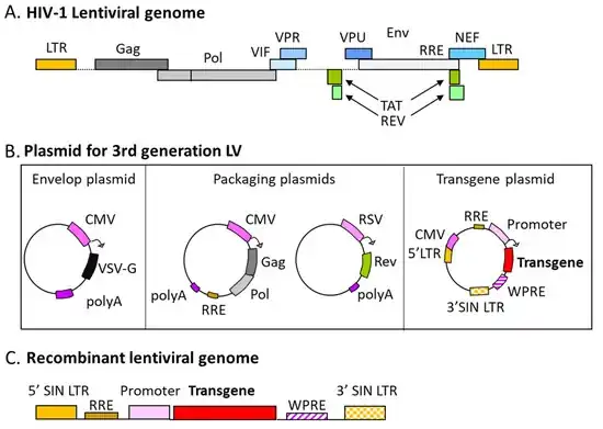 An important consideration for the application of the lentiviral vector is the parent virus that gave rise to the vector. Not all lentiviral vectors are perfectly suited to every application, and sometimes it becomes necessary for the researcher to try work with a different lentiviral vector if one does not offer the desired transgene expression. Other times, it may be necessary to use another viral vector altogether. There are options to choose from between lentiviral vectors, though, and many popular lentiviral vectors have either a human immunodeficiency virus 1 (HIV-1) or equine infectious anemia virus (EIAV).[5]