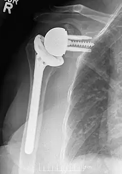 - ↑ Middernacht B, Van Tongel A, De Wilde L (2016). "A Critical Review on Prosthetic Features Available for Reversed Total Shoulder Arthroplasty". BioMed Research International. 2016: 1–9. doi:10.1155/2016/3256931. PMC 5220426. PMID 28105417.