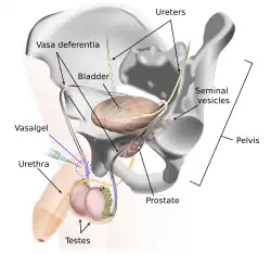 Diagram showing the site of injection of the product Vasalgel, a vasectomy alternative