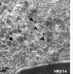 Ultrastructure of H1-HeLa cells infected with Human Rhinovirus 14