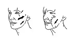 {{cite journal}}: CS1 maint: numeric names: authors list (link) - ↑ Baker, DC; Conley, J (December 1979). "Avoiding facial nerve injuries in rhytidectomy. Anatomical variations and pitfalls". Plastic and Reconstructive Surgery. 64 (6): 781–95. doi:10.1097/00006534-197912000-00005. PMID 515227. S2CID 23475490.