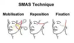 - 1 2 Joshi, Kritika; Hohman, Marc H.; Seiger, Eric (2022), "SMAS Plication Facelift", StatPearls, Treasure Island (FL): StatPearls Publishing, PMID 30285353, retrieved 28 October 2022