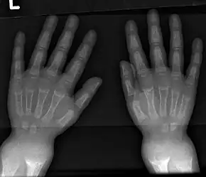 - ↑ EL-Sobky, TA; Shawky, RM; Sakr, HM; Elsayed, SM; Elsayed, NS; Ragheb, SG; Gamal, R (15 November 2017). "A systematized approach to radiographic assessment of commonly seen genetic bone diseases in children: A pictorial review". J Musculoskelet Surg Res. 1 (2): 25. doi:10.4103/jmsr.jmsr_28_17.
